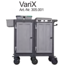 Mit insgesamt drei qualitativ erstklassigen Ausführungen des geschlossenen Reinigungswagens VariX, bieten wir maximaen Nutzen und höchste Hygienestandards für den täglichen Einsatz im Gesundheitswesen und in HoReCa-Bereichen. Die modulare Bauweise ist vielfältiger denn je und ermöglicht für jeden Anwendungsbereich die passende Lösung. Die glatten und einfach zu reinigenden Oberflächen sowie geschlossene Hygienerollen, Eimer und Mopp-Boxen, ermöglichen den Einsatz auch unter Einhaltung von höchsten Hygienevorschriften. Die abschließbaren Türen sorgen für maximale Sicherheit im Objekt. Große, ausziehbare Schubladen bieten ein hohes Ladevolumen. Die großen 150 mm Lenkrollen überwinden mühelos Schwellen und garantieren auch bei voller Beladung einfaches Manövrieren. Die VariX - Reihe ist ein verlässlicher Partner zu einem hervorragenden Preis-Leistungs-Verhältnis und einem hohen Maß an Wirtschaftlichkeit.